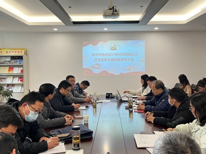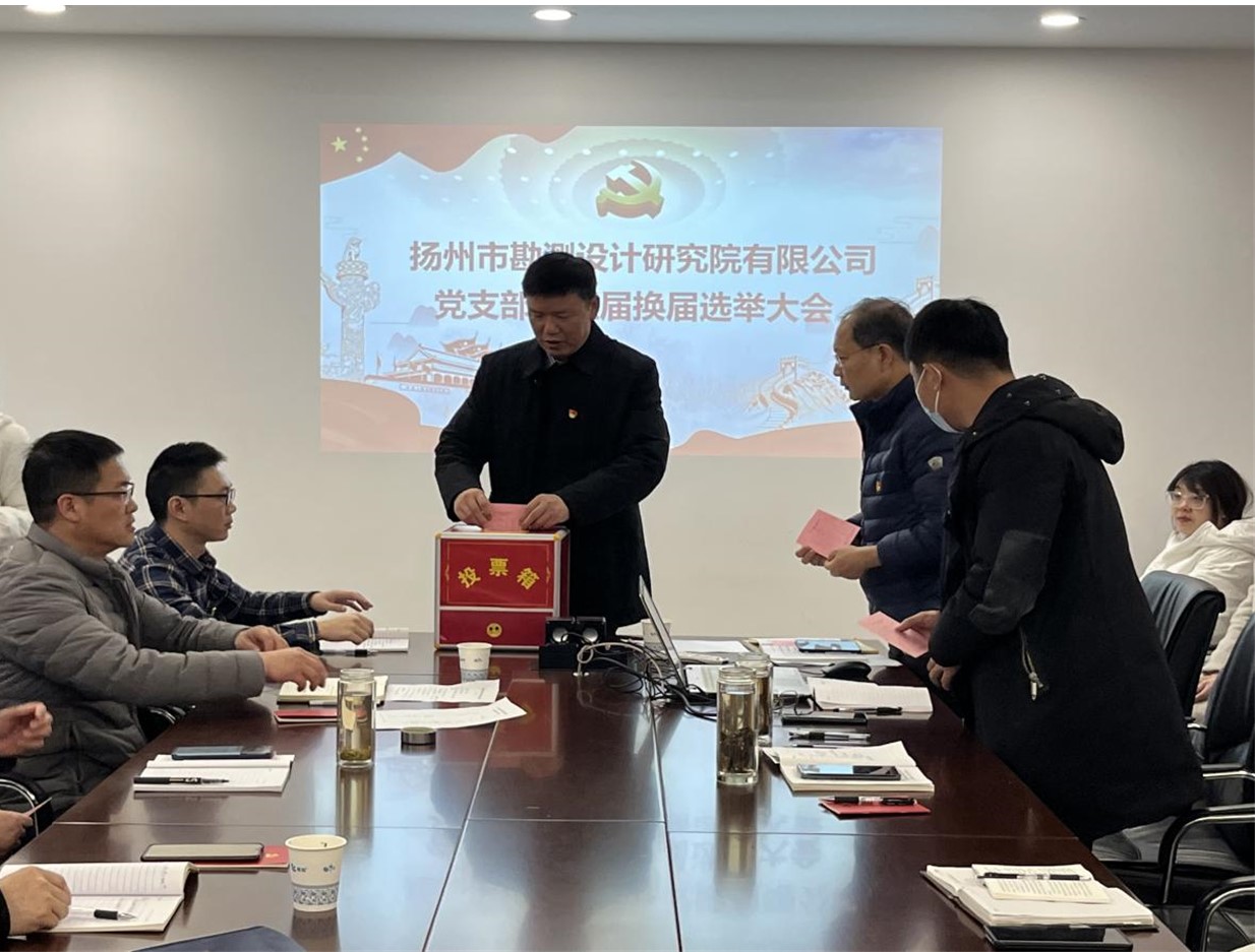 2022年12月2日,揚州市勘測設計研究院有限公司黨支部第五屆換屆選舉大會在黨員之家莊嚴召開。大會在莊嚴的《國歌》聲中拉開帷幕,會議由李泉同志主持。